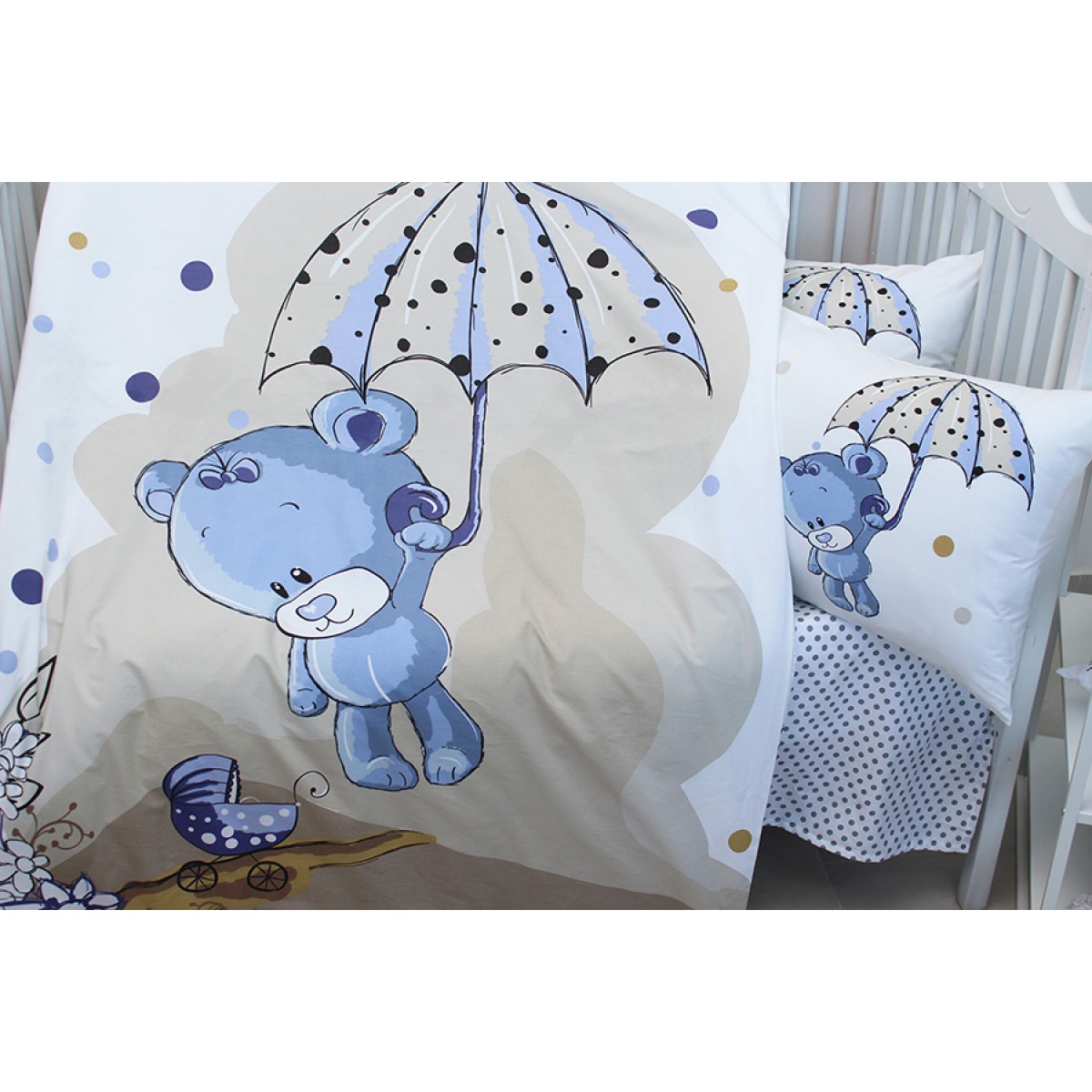 Детский комплект в кроватку Tag Tekstil 100% хлопок Umbrella blue