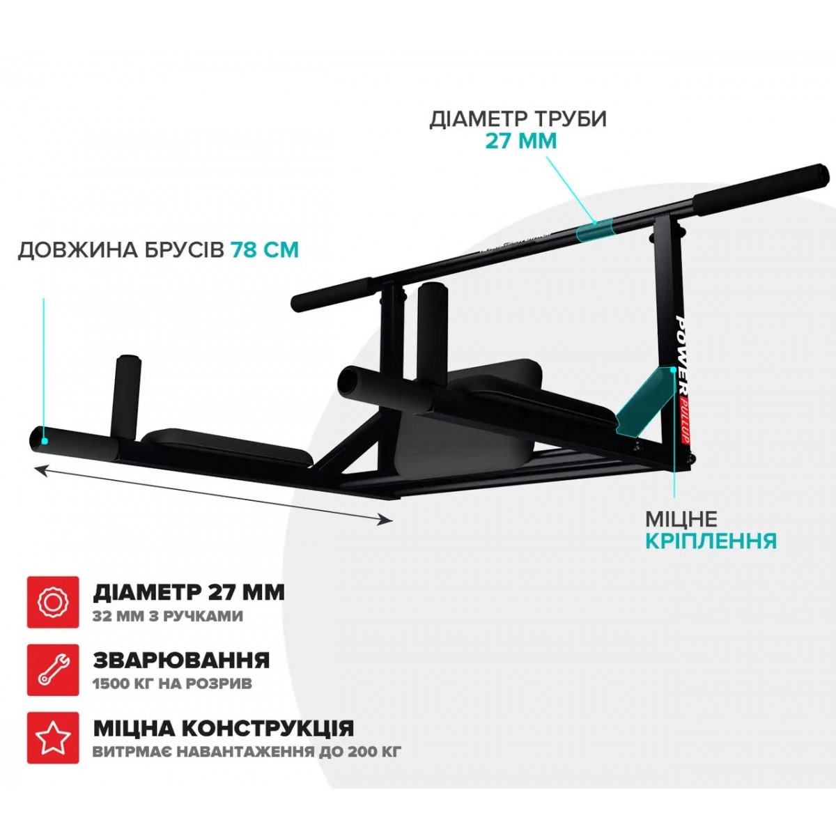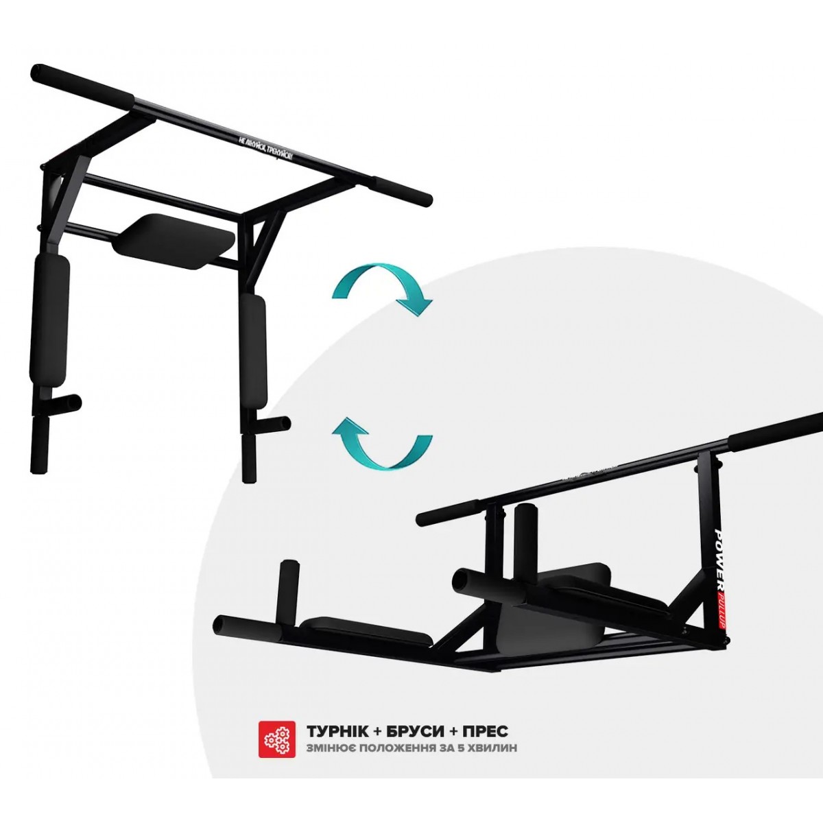 Турник настенный плюс брусья PullUp 3в1 с упором для пресса 2 хвата черный (P3030)