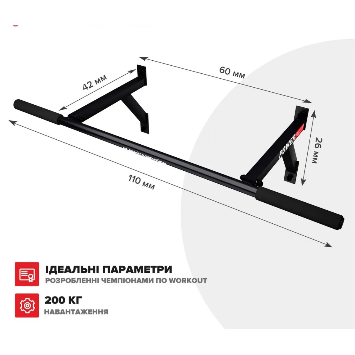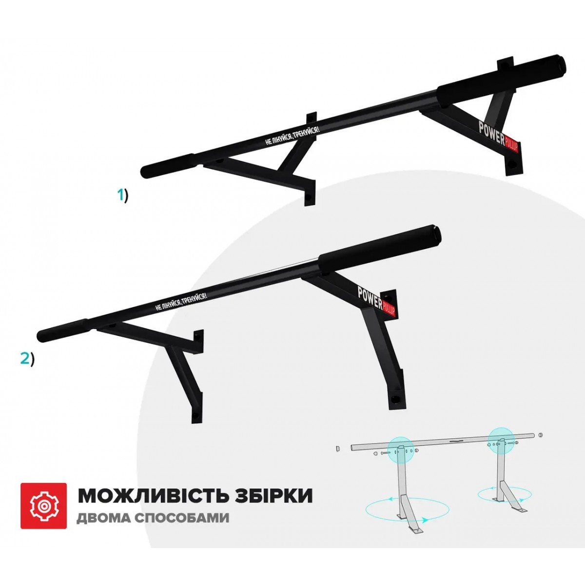 Турник настенный PullUp 2 хвата обычный + широкий черный (P1030)