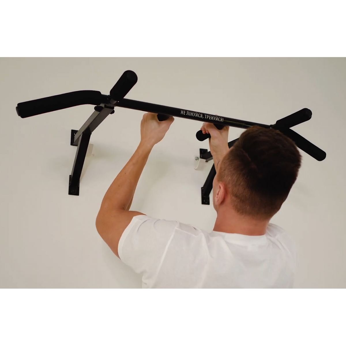 Турник настенный домашний PullUp разборной 4 хвата обычный + широкий + узкий + внешний параллельный хват черный (P1043)