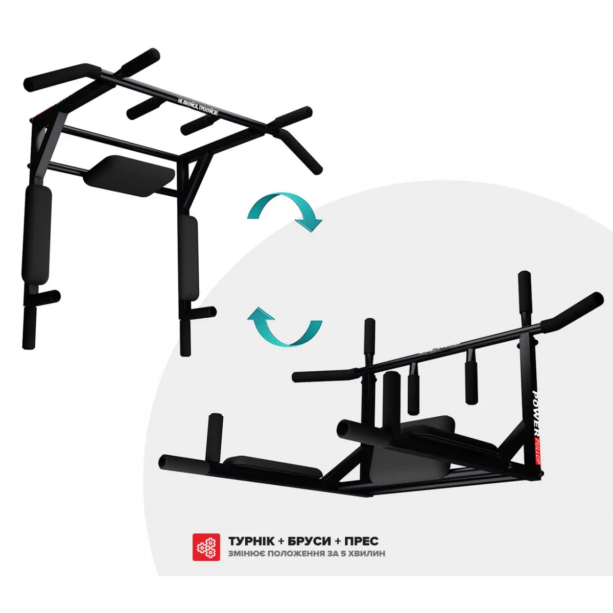 Турник PullUp 3в1 настенный плюс брусья с упором для пресса 4 хвата разборной черный (P3043)
