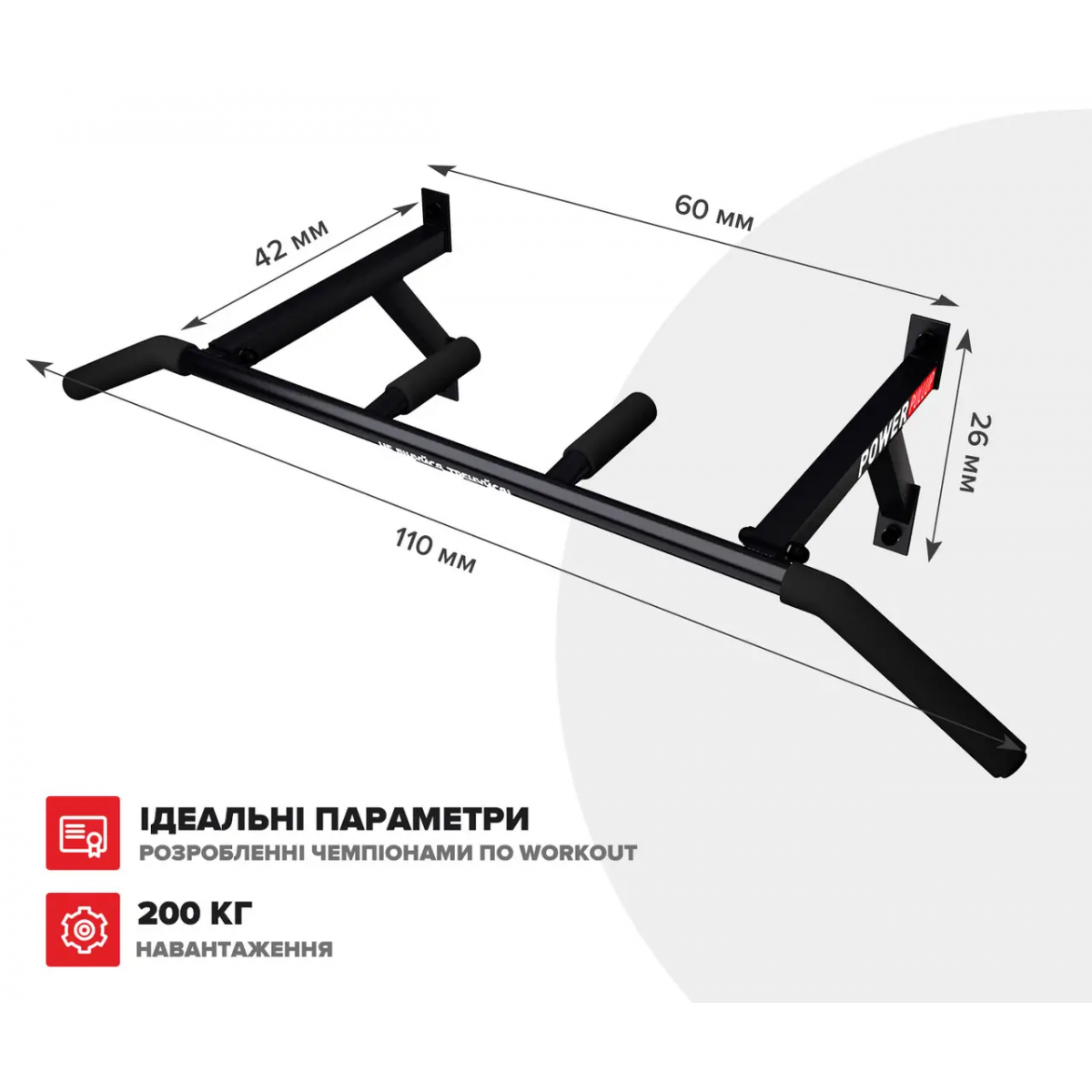 | Размер | Длина перекладины 110 см. Вылет от стены 42 см. Высота крепления 26 см. Ширина между креплениями 55 см. |